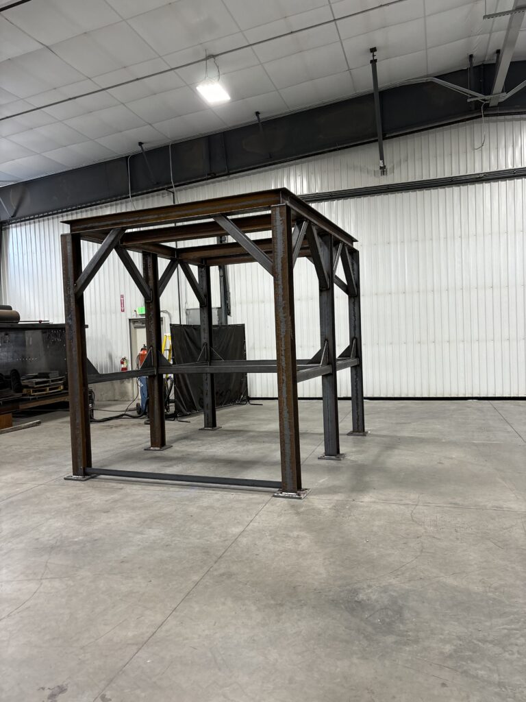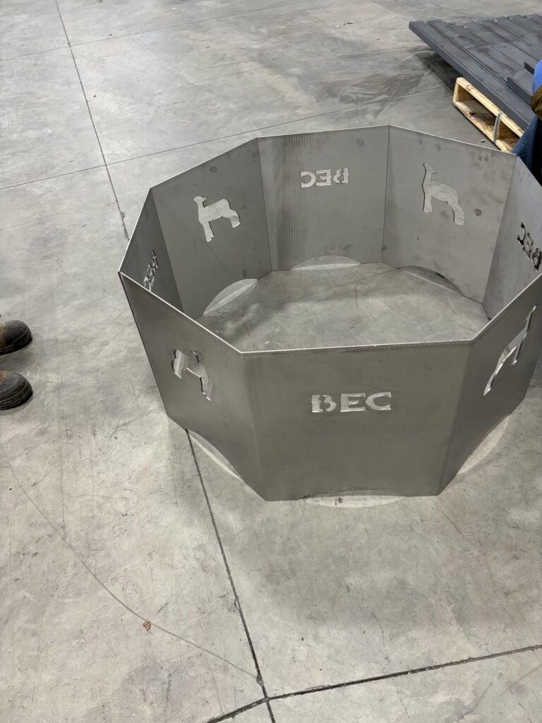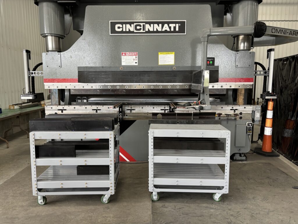 We have a 350-ton Cincinnati press with a 12 ft. Bed and 10ft between the uprights. With it we can do up to 10′ of 1/2″ mild steel. We also have connections with galvanization and powder coating companies to help put finish on the parts.